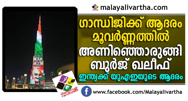 ബുർജ് ഖലീഫ ത്രിവർണമണിഞ്ഞു, ഇത് ഇന്ത്യക്ക് യു എ ഇ നൽകിയ ആദരം