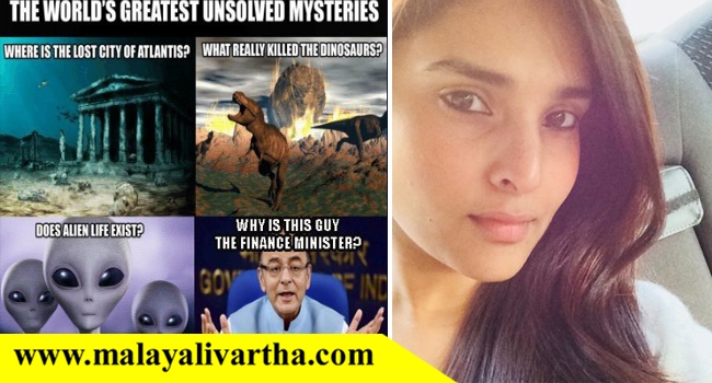 ലോകത്തില് ചുരുളഴിയാത്ത മൂന്ന് രഹസ്യങ്ങളുണ്ട്. അതിനൊപ്പം നാലാമത്തെ രഹസ്യത്തെക്കുറിച്ചാണ് ദിവ്യ കാണിച്ചുതരുന്നത്. അരുണ് ജയ്റ്റ്ലിയുടെ ഫോട്ടോ വെച്ചാണ് ചോദ്യം ഉന്നയിക്കുന്നത്. അരുണ് ജയ്റ്റ്ലി എങ്ങനെ ധനകാര്യമന്ത്രിയായി എന്നാണ് ദിവ്യയുടെ സംശയം.