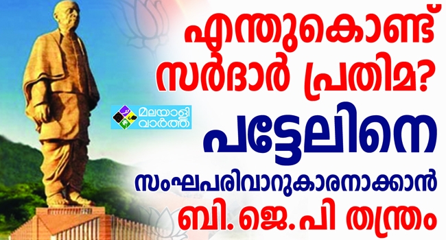 സര്ദാര് പട്ടേലിന്റെ 143ാം ജന്മവാര്ഷിക ദിനത്തോടനുബന്ധിച്ച് രാജ്യമെങ്ങും രാഷ്ട്രീയ ഏകത ദിവസ് ആയി ആഘോഷിക്കുകയാണ്. മൂവായിരം കോടി ചെലവാക്കി പട്ടേലിന്റെ പ്രതിമ നിർമ്മിച്ച് ലോകത്തെ ആകമാനം വിസ്മയത്തുമ്പിൽ നിർത്തുകയും ചെയ്തു. ഇതെല്ലം എന്തിനാണെന്ന് ആലോചിച്ചാൽ ഒറ്റ ഉത്തരമേ ഉള്ളൂ . പ്രാദേശിക ദേശീയത ഉണർത്തി ഗുജറാത്തികളെ തങ്ങൾക്കൊപ്പം നിറുത്താനുള്ള ഗൂഢ പദ്ധതി .. ഗുജറാത്തിലെ പട്ടീദാർ സമുദായത്തിന്റെ പിന്തുണ സംസ്ഥാനത്തെ ബിജെപിയുടെ നിലനിൽപ്പിനു ഇപ്പോൾ ആവശ്യമാണ്. ഹർദിക് പട്ടേലിന്റെ നേതൃത്വത്തിൽ നടന്ന സംവരണ പ്രക്ഷോഭം ബിജെപിയുടെ വോട്ട്ബാങ്കിലുണ്ടാക്കിയ വിള്ളൽ ചെറുതല്ല .വോട്ട് ബാങ്ക് തിരിച്ചു പിടിക്കാൻ പട്ടേലിനെപോലെ സമുന്നതനായ ഒരു നേതാവിനെ കിട്ടിയേ തീരൂ . ബി ജെ പി ക്കാണെങ്കിൽ ഉയർത്തിക്കാട്ടാൻ പ്രസ്തുത സമുദായത്തിൽ നിന്ന് ഒരു നേതാവില്ല. അപ്പോൾ പിന്നെ തന്റെ ജീവിതകാലയളവ് മുഴുവൻ കോൺഗ്രസ് കാരനായി ജീവിച്ച പട്ടേൽ ഏതോ പഴയ സംഘപരിവാറുകാരനാണെന്ന ധ്വനിയുണ്ടാക്കാനാണു ബിജെപി യുടെ ശ്രമം . . ആര്എസ്എസിനെ നിരോധിച്ച നേതാവ് കൂടിയായിരുന്നു നെഹ്റു മന്ത്രിസഭയിലെ ഈ ആഭ്യന്തര മന്ത്രി എന്നതും വിസ്മരിച്ചു. .