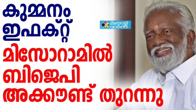 കുമ്മനം ഗവര്ണ്ണറായ മിസോറാമില് ചരിത്രത്തിൽ ആദ്യമായി ബിജെപി അക്കൗണ്ട് തുറന്നു
