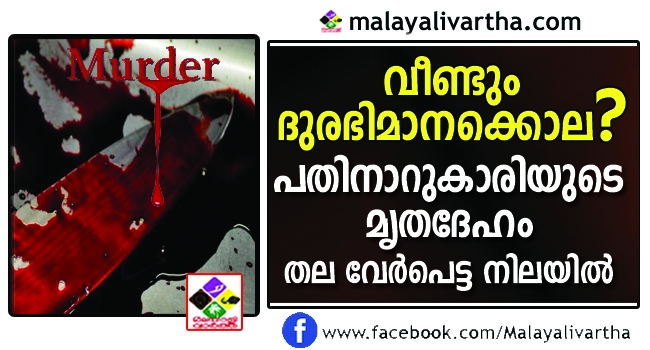 പതിനാറുകാരിയായ പെണ്കുട്ടി ക്രൂരമായി കൊല്ലപ്പെട്ടതു ദുരഭിമാനക്കൊലയാണോ എന്ന് സംശയിച്ചു പോലീസ്. ബലാൽസംഗമെ ന്ന് ബന്ധുക്കൾ