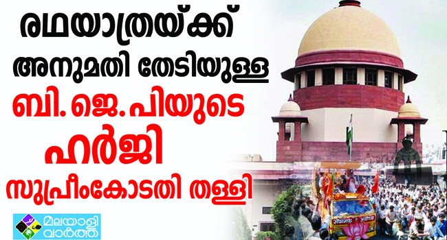 ബിജെപിക്ക് വീണ്ടും തിരിച്ചടി; പശ്ചിമ ബംഗാളില് രഥയാത്ര നടത്താന് അനുവദിക്കണമെന്ന് ആവശ്യപ്പെട്ട് ബിജെപി നല്കിയ ഹര്ജി സുപ്രീം കോടതി തള്ളി