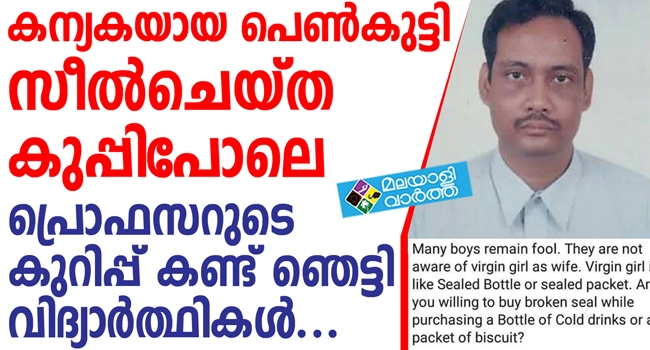 ഒരു പെണ്കുട്ടി ജന്മനാ സീല് ചെയ്യപ്പെട്ടാണ് ഭൂമിയിലെത്തുന്നതെന്ന കുറിപ്പുമായി കോളേജ് അധ്യാപകൻ; കുറിപ്പ് കണ്ട് ഞെട്ടി വിദ്യാർത്ഥികൾ...