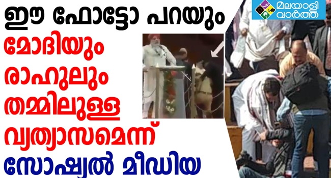 ഹൃദയാഘാതം വന്ന് വേദിയില് ഒരാള് വീണിട്ടും പ്രസംഗം തുടര്ന്ന് മോഡി; തെന്നിവീണ ഫോട്ടോഗ്രാഫറെ താങ്ങിപ്പിടിച്ച് രാഹുല്; ഇതാണ് മോദിയും രാഹുലും തമ്മിലുള്ള വ്യത്യാസമെന്ന് സോഷ്യല് മീഡിയ.