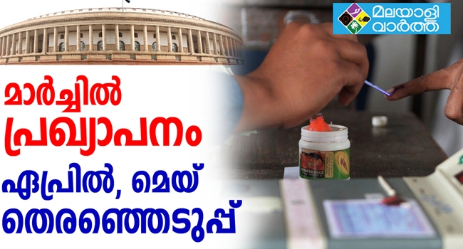 പൊതുതെരഞ്ഞെടുപ്പ് പ്രഖ്യാപനം മാര്ച്ചില് ഉണ്ടാകുമെന്ന് സംസ്ഥാനത്തെ മുഖ്യതെരഞ്ഞെടുപ്പ് ഓഫീസര് ടിക്കറാം മീണ. ഏപ്രില് . മേയ് മാസങ്ങളില് തെരഞ്ഞെടുപ്പ് നടക്കും. നാമ നിര്ദേശ പത്രിക പിന്വലിക്കാനുള്ള അവസാന തിയതി വരെ വോട്ടര് പട്ടികയില് പേരു ചേര്ക്കാം. ഇതുവരെ സംസ്ഥാനത്ത് 2.54 കോടി വോട്ടര്മാരുണ്ടെന്നും ടിക്കാറാം മീണ തിരുവനന്തപുരത്ത് പറഞ്ഞു. സംസ്ഥാനത്തെ 20 ലോക്സഭാ മണ്ഡലങ്ങളിലേക്കാണ് തെരഞ്ഞെടുപ്പ് നടക്കുക. രാജ്യമെമ്പാടും നടക്കുന്ന തെരഞ്ഞെടുപ്പായതിനാല് പല സംസ്ഥാനങ്ങളിലും പല ദിവസങ്ങളിലായിരിക്കും വോട്ടെടുപ്പ്. എന്നാല് വോട്ടെണ്ണല് ഒറ്റ ദിവസമായിരിക്കും. ഇലക്ട്രോണിക് വോട്ടിംഗ് യന്ത്രമായിരിക്കും ഇത്തവണയും ഉപയോഗിക്കുക. അതിനെതിരെ ഉയര്ന്ന വിവാദങ്ങളില് കഴമ്പില്ലെന്ന് മുഖ്യതെരഞ്ഞെടുപ്പ് കമ്മീഷന് വ്യക്തമാക്കിയിരുന്നു.