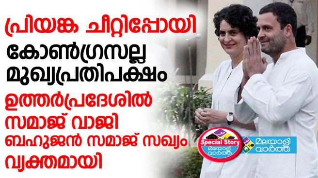 പ്രിയങ്ക ചീറ്റിപ്പോയി ; പ്രിയങ്കാ ഗാന്ധിയുടെ രംഗപ്രവേശം കോണ്ഗ്രസിനു നല്കുന്ന പുതിയ പ്രതിച്ഛായയെക്കുറിച്ചുള്ള കഥകള്ക്ക് അവസാനമായി ; ഉത്തര്പ്രദേശില് സമാജ് വാജി- ബഹുജന് സമാജ് സഖ്യം വ്യക്തമായി