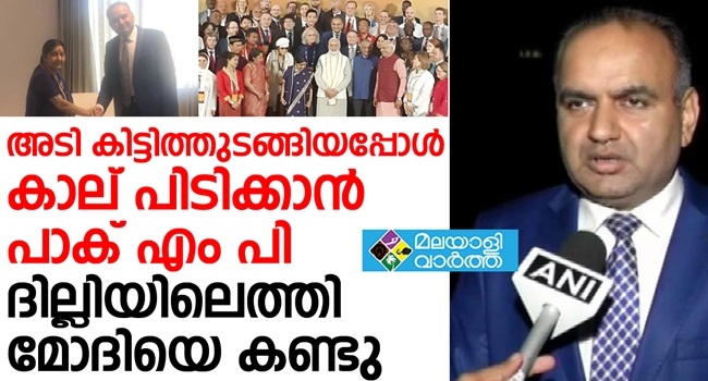 അടി കിട്ടിത്തുടങ്ങിയപ്പോള് കാല് പിടിക്കാന് പാക് എം പി മോദിക്ക് മുന്നില്... പുല്വാമ സംഭവത്തിനു ശേഷം ഇന്ത്യപാക് ബന്ധം പൊട്ടിത്തെറിയുടെ വക്കിലെത്തി നില്ക്കെ പാക്കിസ്ഥാനിലെ ഭരണകക്ഷി എംപി പ്രധാനമന്ത്രി നരേന്ദ്ര മോദിയുമായി കൂടിക്കാഴ്ച നടത്തി