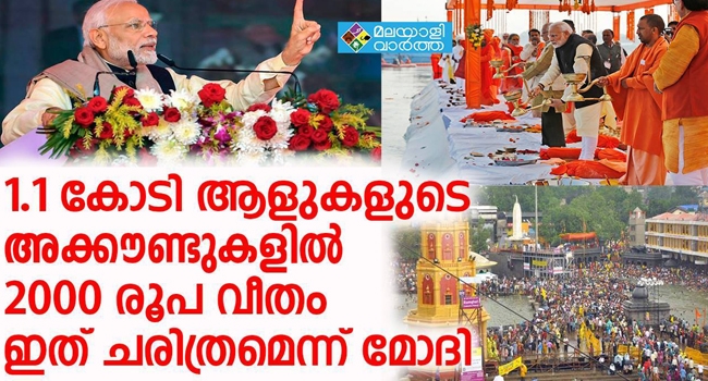 ഇത് ചരിത്രമെന്ന് മോദി... 1.1 കോടി കര്ഷകരുടെ അക്കൗണ്ടില് 2000 രുപ വീതം, രാജ്യത്തെ കര്ഷകജനതയുടെ ആഗ്രഹപൂര്ത്തീകരണമാണ് 'കിസാന് സമ്മാന്നിധി' പദ്ധതിയെന്ന് പ്രധാനമന്ത്രി