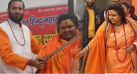 ഗാന്ധിവധം പുനരാവിഷ്കരിച്ചവരെ ഭഗവത്ഗീതയും വാളും നല്കി ആദരിച്ച് ഹിന്ദു മഹാസഭ; ഹിന്ദു മഹാസഭയുടെ നടപടിക്കെതിരെ വൻ പ്രതിഷേധം