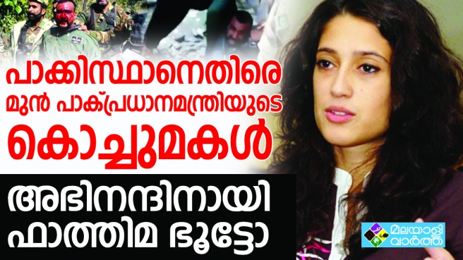 ലോകം മുളുവന് ഇന്ത്യക്കൊപ്പം; പാകിസ്താന്റെ പിടിയിലായ ഇന്ത്യന് വ്യോമസേനാ പൈലറ്റിനെ വിട്ടുകൊടുക്കണമെന്ന് പാക് മുന് പ്രധാനമന്ത്രി സുള്ഫിക്കര് അലി ഭൂേട്ടായുടെ കൊച്ചുമകളും എഴുത്തുകാരിയുമായ ഫാത്തിമ ഭൂട്ടോ രംഗത്ത്