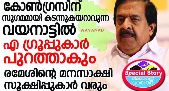 കോണ്ഗ്രസിന് സുഗമമായി കടന്നുകയറാവുന്ന വയനാട്ടില് എ ഗ്രൂപ്പുകാര് പുറത്താക്കും; ലോക്സഭാ തെരഞ്ഞെടുപ്പില് വയനാട് മണ്ഡലത്തിന് വേണ്ടി കോണ്ഗ്രസില് പിടിവലി മുറുകുമ്പോള്, രമേശ് ചെന്നിത്തലയുടെ ഏറ്റവും വലിയ വിശ്വസ്തനായിരിക്കും നറുക്കുവീഴുക