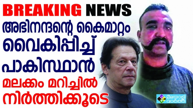 അതേസമയം വെള്ളിയാഴ്ച്ച ഉച്ചയോടെ അഭിനന്ദനെ ഇന്ത്യയ്ക്ക് കൈമാറും എന്നാണ് നേരത്തെ പാകിസ്ഥാന് അറിയിച്ചതെങ്കിലും കൈമാറ്റം വൈകിപ്പിക്കുകയാണ് പാകിസ്ഥാന് എന്നാണ് ഒടുവില് വരുന്ന വിവരം. വൈകുന്നേരം നടക്കുന്ന പതാക താഴ്ത്തല് ചടങ്ങിനിടയില് അഭിനന്ദനെ പാകിസ്ഥാന് ഇന്ത്യയ്ക്ക് കൈമാറും എന്നാണ് അറിയുന്നത്. പാകിസ്ഥാനിലെ ഇന്ത്യന് സ്ഥാപനതിക്കാവും അഭിനന്ദനെ കൈമാറുക.