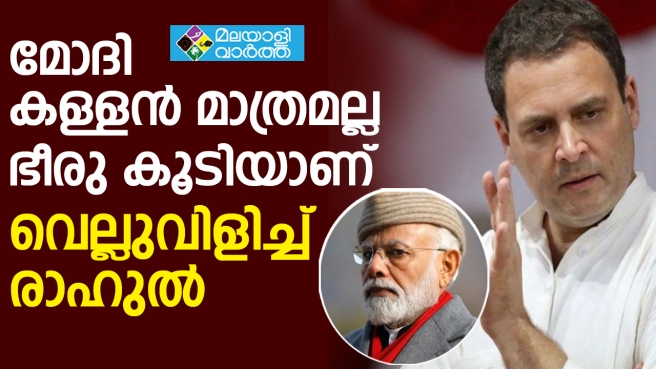 മോദി കള്ളന് മാത്രമല്ല ഭീരു കൂടി; പ്രധാനമന്ത്രി നരേന്ദ്ര മോദിക്കെതിരെ രൂക്ഷ വിമർശനവുമായി കോണ്ഗ്രസ് അധ്യക്ഷന് രാഹുല് ഗാന്ധി രംഗത്ത്
