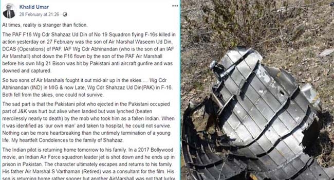 പാകിസ്ഥാന്റെ എഫ്-16 പൈലറ്റ് പറന്നിറങ്ങിയത് പാക് അധീന കാശ്മീരില്; ഇന്ത്യക്കാരനെന്നു കരുതി അദ്ദേഹത്തെ സ്വന്തം നാട്ടുകാര് മര്ദിച്ചുകൊന്നു
