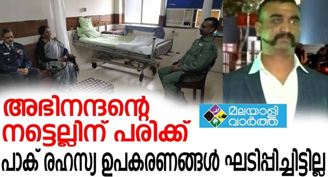 വിംഗ് കമാന്ഡര് അഭിനന്ദന് വര്ധമാന്റെ നട്ടെല്ലിന് താഴെയായി പരിക്കെന്ന് സ്കാനിംഗ് റിപ്പോര്ട്ട്; പരിക്ക് കണ്ടെത്തിയത് വ്യോമസേനയുടെ സെന്ട്രല് മെഡിക്കല് എസ്റ്റാബ്ലിഷ്മെന്റില് നടത്തിയ വൈദ്യപരിശോധനയിൽ