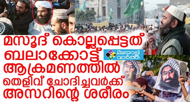 ഇന്ത്യയുടെ ആയിരം കിലോ ബോംബ് വീണത് ജയ്ഷെ ക്യാമ്ബില് തന്നെയെന്ന വിവരങ്ങള്ക്ക് സ്ഥിരീകരണം വരുന്നതിന് പുറമെ ആ ആക്രമണത്തില് ജയ്ഷെയുടെ തലവനായ കൊടും ഭീകരന് മസൂദ് അസറും കൊല്ലപ്പെട്ടുവെന്ന് റിപ്പോര്ട്ട്
