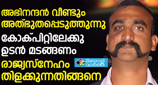 കോക്പിറ്റിലേക്ക് മടങ്ങിപ്പോകണമെന്ന് ആഗ്രഹവുമായി ആവേശത്തോടെ അഭിനന്ദന് വര്ത്തമാന്...