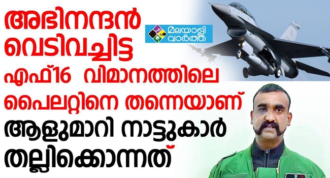 നാട്ടുകാര് തല്ലിക്കൊന്നത് അഭിനന്ദനെ വെടിവച്ചിട്ട F16 വിമാനത്തിലെ പൈലറ്റിനെ; ഇന്ത്യന് സൈനികനെന്നു തെറ്റിദ്ധരിച്ച് ആള്ക്കൂട്ടം മര്ദിച്ചു കൊന്നെന്നു വാര്ത്ത പരന്നിട്ടും സ്വന്തം പൈലറ്റിനെക്കുറിച്ചു പ്രതികരിക്കാന് തയാറാകാതെ പാക്കിസ്ഥാന്