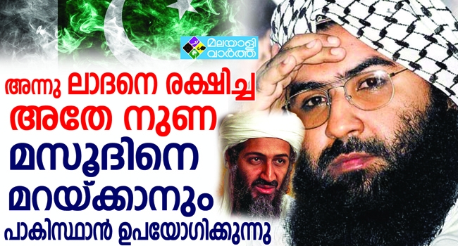 ലാദനെ രക്ഷിച്ച അതേ നുണ മസൂദിനെ മറയ്ക്കാനും ഉപയോഗിച്ച് പാകിസ്ഥാന്; ഭീകര സംഘടനയായ ജയ്ഷെ മുഹമ്മദ് തലവന് മസൂദ് അസ്ഹറിന്റെ കാര്യത്തില് പാക്കിസ്ഥാന് പയറ്റുന്നത് അല് ഖായിദയുടെ തലവനായിരുന്ന ഉസാമ ബിന് ലാദന്റെ കാര്യത്തില് പുറത്തെടുത്ത അതേ തന്ത്രം