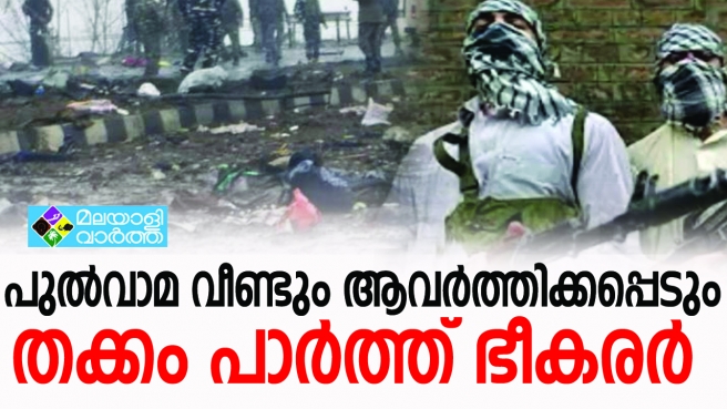തക്കം പാര്ത്ത് ഭീകരര്; പുൽവാമയിൽ നടത്തിയതു പോലെയുള്ള ചാവേറാക്രമണങ്ങൾ ആവർത്തിക്കാൻ സാധ്യതയുള്ളതായി രഹസ്യാന്വേഷണഏജൻസിയുടെ റിപ്പോർട്ട്