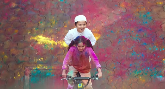ഹോളി ആഘോഷത്തിനിടെ ഒരു ഹിന്ദു പെണ്കുട്ടി തന്റെ മുസ്ലിം സുഹൃത്തിനെ അവന്റെ കുര്ത്തയിലും പൈജാമയിലും ചായം പറ്റാതെ വെള്ളിയാഴ്ച നമസ്കാരത്തിന് പള്ളിയിലെത്താന് സഹായിക്കുന്നതാണ് പരസ്യം. ബക്കറ്റ് നിറയെ ചായവുമായി കാത്തിരിക്കുന്ന ഒരു കൂട്ടം കുട്ടികള്ക്കു മുൻപിൽ ഹിന്ദു പെണ്കുട്ടി പോയി നില്ക്കുകയും അവരെ പ്രകോപിപ്പിക്കുകയും ചെയ്യുന്നു. അവര് ചായം മുഴുവനും തനിക്കുമേല് എറിഞ്ഞെന്ന് ഉറപ്പുവരുത്തിയശേഷം അവള് മുസ്ലിം സുഹൃത്തിനെ കൂട്ടിക്കൊണ്ടുവരികയും സൈക്കിളില് പള്ളിയിലെത്തിക്കുകയും ചെയ്യുന്നു.