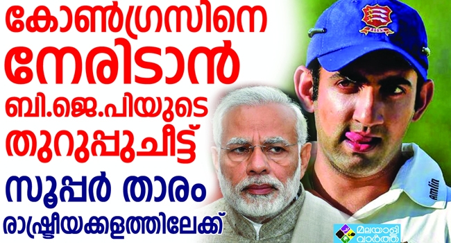 കോൺഗ്രസിനെ നേരിടാൻ ബി.ജെ.പിയുടെ തുറുപ്പുചീട്ട്; മുൻ ഇന്ത്യൻ ക്രിക്കറ്റ് താരം ഗൗതം ഗംഭീർ ലോക്സഭാ തിരഞ്ഞെടുപ്പിൽ കോൺഗ്രസിനെതിരെ ബി.ജെ.പി ടിക്കറ്റിൽ മത്സരിക്കുമെന്ന് സൂചന