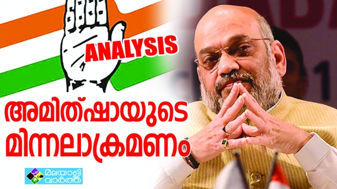 അമിത്ഷായുടെ മിന്നലാക്രമണം; അമിത്ഷായുടെ മിന്നലാക്രമണത്തിൽ പ്പെട്ട് കേരളത്തിലെയും കേന്ദ്രത്തിലെയും കോണ്ഗ്രസ് നേതൃത്വം