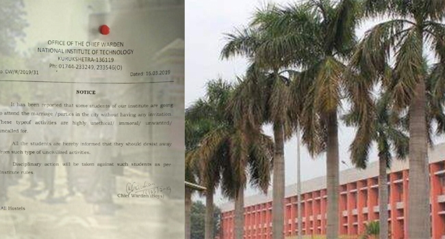 എൻഐടിക്ക് സമീപത്തുള്ള വീടുകളിലും ഓഡിറ്റോറിയങ്ങളിലും നടക്കുന്ന കല്യാണങ്ങളിൽ വിദ്യാർത്ഥികൾ ക്ഷണിക്കാതെ എത്തുന്നുവെന്നാണ് പരാതി. ഈ പ്രവണത അധാര്മികവും അനാവശ്യവുമാണെന്ന് നോട്ടീസില് പറയുന്നു. ഇതിനെതിരെ കർശന നടപടിയുണ്ടാകുമെന്നും അധികൃതർ അറിയിച്ചു. ഹോസ്റ്റൽ ഭക്ഷണം ഒഴിവാക്കാനാണ് വിദ്യാർത്ഥികൾ ഇത്തരം വിരുന്നുകളിൽ പങ്കെടുക്കുന്നതെന്നാണ് റിപ്പോർട്ട്.