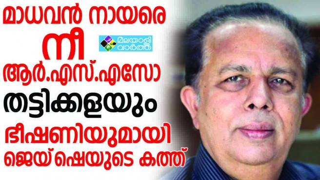 മാധവന് നായരെ നീ ആർഎസ്എസോ ; ഐ എസ് ആര് ഒ മുന് തലവന് ഡോ. ജി മാധന്നായര്ക്ക് വധ ഭീഷണി; ഭീഷണിയുമായി ജെയ്ഷെയുടെ കത്ത്