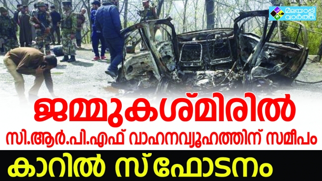 ജമ്മു കശ്മീരില് സിആര്പിഎഫ് വാഹന വ്യൂഹത്തിന് സമീപം കാര് പൊട്ടിത്തെറിച്ചു; സംഭവത്തെ തുടര്ന്ന് ജമ്മുശ്രീനഗര് ദേശീയ പാതയിലെ ഗതാഗതം താത്കാലികമായി നിര്ത്തിവച്ചു