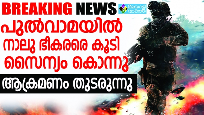 ജമ്മു കശ്മീരിലെ പുല്വാമ ജില്ലയിലുണ്ടായ ഏറ്റുമുട്ടലില് നാല് തീവ്രവാദികളെ വധിച്ചു; മൂന്ന് സുരക്ഷാ ഉദ്യോഗസ്ഥര്ക്ക് പരിക്കേറ്റു