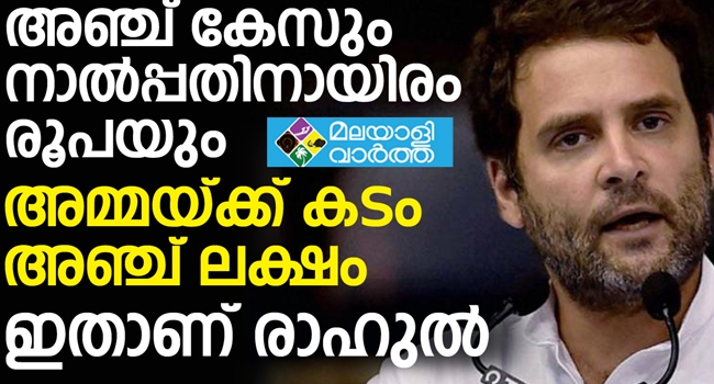 72 ലക്ഷം രൂപയുടെ ബാധ്യതയുണ്ടെന്ന് തിരഞ്ഞെടുപ്പ് നാമനിര്ദ്ദേശ പത്രികയ്ക്കൊപ്പം സമര്പ്പിച്ച സത്യവാങ്മൂലത്തില് രാഹുല്, അഞ്ച് കേസുകളില് പ്രതി, കൈവശം 40,000 രൂപ, ഇതാണ് രാഹുല്