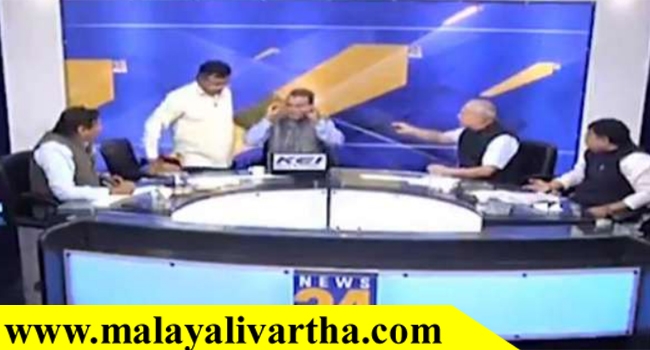 വാശിയേറിയ ചാനല് ചര്ച്ചയില് ബിജെപി വക്താവിന്റെ വാക്കുകളില് കുപിതനായ കോണ്ഗ്രസ് വക്താവ്; ഒടുക്കം ദേഹത്ത് വെള്ളമൊഴിച്ച് കലിപ്പ് തീർത്തു