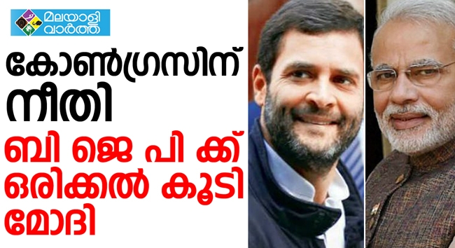ലോക്സഭാ തെരെഞ്ഞെടുപ്പോടനുബന്ധിച്ച് കോണ്ഗ്രസും ബി ജെ പിയുടെയും തെരെഞ്ഞെടുപ്പ് പോര് മുറുകുന്നതിനിടെ പ്രചാരണ മുദ്രാവാക്യങ്ങളും പാട്ടും പുറത്തിറക്കി ഇരു കൂട്ടരും ; ഇനി നീതി പുലരുമെന്ന് കോൺഗ്രസ്; ഒരു വട്ടം കൂടി മോദിയെന്ന് ബി.ജെ.പി