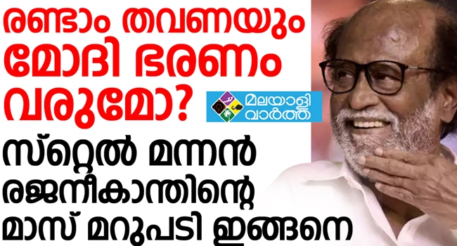 ലോക്സഭാ തിരഞ്ഞെടുപ്പിന് ശേഷം രണ്ടാംതവണയും നരേന്ദ്രമോദി അധികാരത്തിലെത്തുമോ എന്ന ചോദ്യത്തിന് സ്റ്റെല് മന്നന് രജനീകാന്തിന്റെ മാസ് മറുപടി ഇങ്ങനെ...