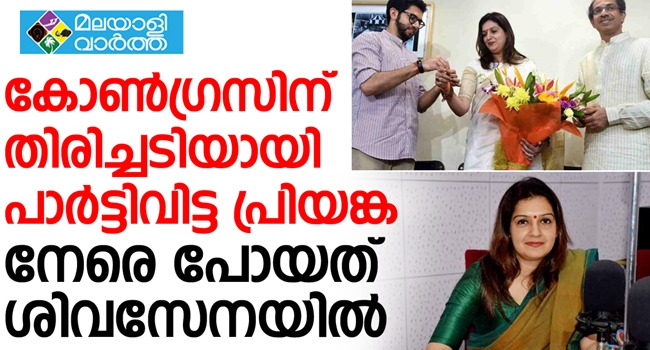 കോണ്ഗ്രസിന് തിരിച്ചടിയായി പാര്ട്ടിവിട്ട പ്രിയങ്ക ചതുര്വേദി രാജിവച്ച് ശിവസേനയില് ചേര്ന്നു, സ്ത്രീകളേയും യുവാക്കളേയും ആദരിക്കുന്ന പാര്ട്ടിയാണ് ശിവസേനയെന്നും, തനിക്ക് ഇടംനല്കിയ ഉദ്ധവ് താക്കറെയോട് നന്ദിയെന്നും പ്രിയങ്ക