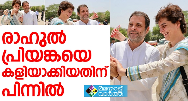 തെരെഞ്ഞെടുപ്പ് തിരക്കിനിടെ തോളില് കൈയിട്ട് പ്രിയങ്ക ഗാന്ധിയെ കളിയാക്കി കോൺഗ്രസ് അധ്യക്ഷൻ രാഹുല് ഗാന്ധി ; കളിയാക്കിയതിന്റെ പിന്നിലിത് ; ഒടുവില് സ്നേഹ ചുംബനവും ; വീഡിയോ വൈറല്