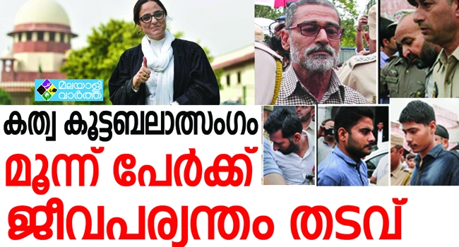 സാഞ്ചിറാം അടക്കം ആദ്യ മൂന്ന് പ്രതികള്ക്ക് ജീവപര്യന്തം; മറ്റു മൂന്നു പേര്ക്ക് അഞ്ചു വര്ഷം കഠിന തടവ്; ജമ്മുകശ്മീരിലെ കത്വയില് എട്ടു വയസുകാരിയെ കൂട്ടബലാത്സംഗത്തിന് ഇരയാക്കി കൊലപ്പെടുത്തിയ കേസില് കോടതി ശിക്ഷ വിധിച്ചു