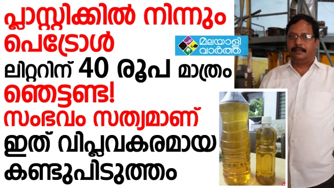 കത്തിച്ചു കളഞ്ഞാല് അന്തരീക്ഷ മലിനീകരണം, വലിച്ചെറിഞ്ഞാല് ഭൂമിക്ക് നാശം!! പ്ലാസ്റ്റിക് എന്ന പരിസ്ഥിതിയുടെ വില്ലൻ ഇനി പെട്രോളായി മാറും; ഞെട്ടണ്ട സംഭവം സത്യമാണ്....