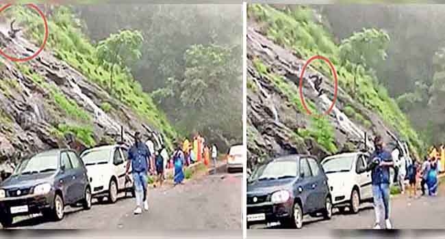 റോഡരികില് വാഹനം നിര്ത്തി വെള്ളച്ചാട്ടത്തിന്റെ വീഡിയോ പകര്ത്തിയവര്ക്ക് ഇയാള് വീഴുന്ന ദൃശ്യങ്ങള് ലഭിച്ചു. ഇതു സമൂഹ മാധ്യമങ്ങളില് പ്രചരിക്കുന്നുണ്ട്.