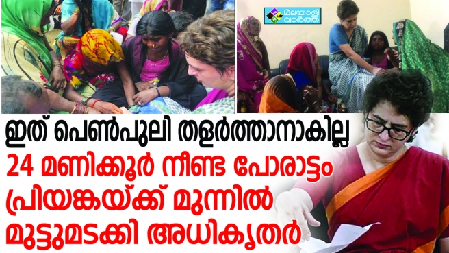 24 മണിക്കൂര് നീണ്ട പോരാട്ടം; 24 മണിക്കൂര് നീണ്ട കുത്തിയിരിപ്പ് സമരത്തിനൊടുവില് പ്രിയങ്ക ഗാന്ധിയുടെ ആവശ്യത്തിന് മുന്നിൽ വഴങ്ങി അധികൃതര്; സോന്ഭദ്രയില് വെടിവെയ്പില് കൊല്ലപ്പെട്ടവരുടെ ബന്ധുക്കളെ പ്രിയങ്ക ഗാന്ധിക്ക് കാണാന് അവസരം നല്കി