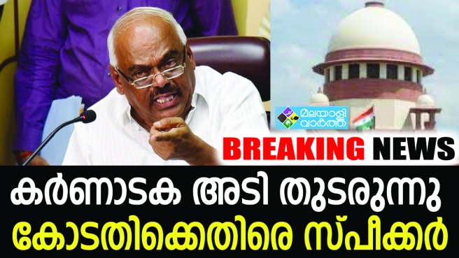 കര്ണാടകയില് വിമത എം.എല്.എമാര്ക്ക് വിപ്പ് ബാധകമെന്ന് സ്പീക്കര് രമേഷ് കുമാര് അറിയിച്ചു. ഇതോടെ വിമതരും കോണ്ഗ്രസും ബി.ജെ.പിയും തമ്മിലുള്ള അടി സേുപ്രീംകോടതിയും സ്പീക്കറും തമ്മിലേക്ക് എന്നനിലയിലേക്ക് നീങ്ങുന്നു. അതേസമയം വിശ്വാസവോട്ടെടുപ്പ് നീട്ടി തന്നെ ബലിയാടാക്കരുതെന്ന് സ്പീക്കര് മുഖ്യമന്ത്രി എച്ച്.ഡി കുമാരസ്വാമിയോട് പറഞ്ഞതായാണ് വിവരം. ഇന്ന് ചര്ച്ച പൂര്ത്തിയാക്കണമെന്ന് നിര്ദ്ദേശിച്ചു. വോട്ടെടുപ്പ് മറ്റാന്നാളത്തേക്ക് ആക്കണമെന്ന് മുഖ്യമന്ത്രി ആവശ്യപ്പെട്ടിരുന്നു. വോട്ടെടുപ്പിന് സമയപരിധി നിശ്ചയിക്കണമെന്ന ബി.ജെ.പിയുടെ ആവശ്യവും സ്പീക്കര് തള്ളി. അങ്ങനെ കുരുക്കില് നിന്ന് വീണ്ടും കുരുക്കിലേക്ക് നീങ്ങുകയാണ് കര്ണാടകത്തിലെ ജനാധിപത്യം. വിമത എം.എല്.എമാര് വിശ്വാസവോട്ടെടുപ്പില് പങ്കെടുക്കണ്ടെന്നാണ് സുപ്രീംകോടതി ചീഫ് ജസ്റ്റിസ് അധ്യക്ഷനായ ബെഞ്ച് ഉത്തരവിട്ടത്. അതോടെ സര്ക്കാര് വീഴുമെന്നാണ് കരുതിയിരുന്നത്. വിമതര്ക്ക് വിപ്പ് ബാധകമാണെന്ന് സ്പീക്കര് രാവിലെ പ്രഖ്യാപിച്ചതോടെ കാര്യങ്ങള് കീഴ്മേല് മറിയുകയായിരുന്നു.