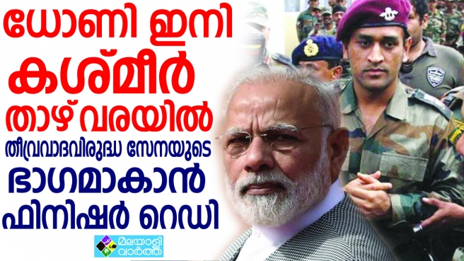 കാശ്മീരിനെ മുറിവേല്പിക്കാതെസംരക്ഷിക്കാൻ രണ്ടാം മോദി സർക്കാർ സർവ്വസന്നാഹവുമായി രംഗത്തുണ്ട്.രാജ്യസുരക്ഷ എന്ന വലിയ ഉത്തരവാദിത്യം ശിരസാവഹിച്ചിരിക്കുന്ന കേന്ദ്രനേതൃത്വം രാജ്യത്തെ എന്ത് വില കൊടുത്തും കാക്കുക തന്നെ ചെയ്യും. ഇന്ത്യയുടെ യുവതലമുറ രാജ്യത്തെ സംരക്ഷിക്കുക ദൗത്യം മുറുകെ പിടിച്ച് നീങ്ങുന്നുമുണ്ട് ,ഇന്ത്യൻ ക്രിക്കറ്റ്ന്റെ മുൻ നായകൻ മഹേന്ദ്രസിംഗ് ധോണിയും അത്തരത്തിലൊരു കർമപദ്ധതിയുമായി മുന്നേറുകയാണ് .അതെ മഹേന്ദ്ര സിംഗ് ധോണി എന്ന കൂൾ ഫിനിഷർ ഇപ്പോള് കശ്മീരിലെ ആര്മി യൂണിറ്റില് തിരക്കിലാണ്.