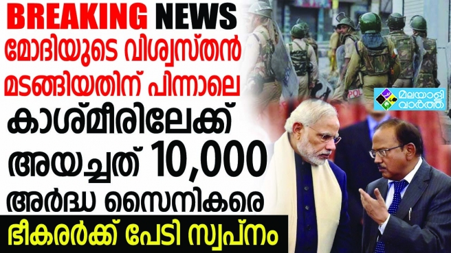 മോദിയുടെ വിശ്വസ്തൻ രണ്ടും കൽപിച്ച് ; അജിത് ഡോവൽ മടങ്ങിയതിന് പിന്നാലെ കാശ്മീരിൽ 10,000 അർദ്ധ സൈനികരെ വിന്യസിക്കുന്നു