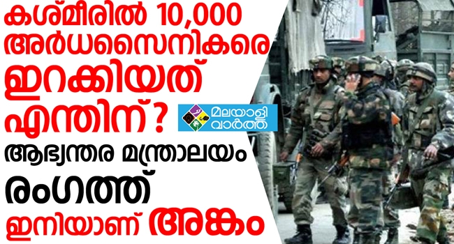 കശ്മീരില് 10,000 അര്ധസൈനികരെ വിന്യസിച്ചതെന്തിനെന്ന് വെളിപ്പെടുത്തി മന്ത്രാലയം