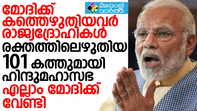 ഒറ്റുകാര്ക്കെതിരെ രാജ്യദ്രോഹക്കുറ്റം ചുമത്തണം; മോദിക്ക് കത്തെഴുതിയ 49 പ്രമുഖര്ക്കെതിരെ നടപടിയെടുക്കണമെന്ന് ഹിന്ദുമഹാസഭ