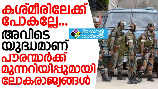 കശ്മീരിലേക്ക് പോകല്ലേ... അവിടെ യുദ്ധമാണ്.. യുദ്ധം; കശ്മീരിലേക്ക് പോകുന്ന പൗരന്മാര്ക്ക് ജാഗ്രതാ നിര്ദ്ദേശവുമായി ബ്രിട്ടനും ജര്മനിയും പൗരന്മാര്ക്ക് മുന്നറിയിപ്പുമായി ലോകരാജ്യങ്ങള്