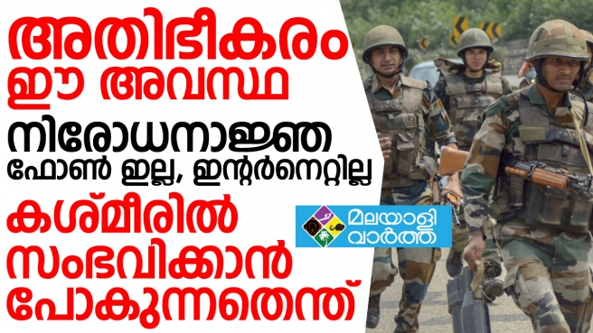 നിരോധനാജ്ഞ, ഫോണ് ഇല്ല, ഇന്റര്നെറ്റില്ല; കശ്മീരില് സംഭവിക്കാന്, പോകുന്നതെന്ത്; കശ്മീരിലെ നേതാക്കളെല്ലാം വീട്ടുതടങ്കലില്; ഭീതിയോടെ ജനങ്ങള്; അതിര്ത്തിയില് ഭീകരരുടെ തല ഉരുളുന്നു; അതി ഭീകരം ഈ അവസ്ഥ