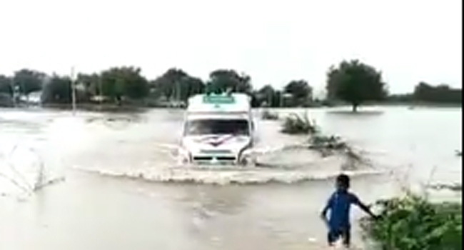 നിറഞ്ഞൊഴുകുന്ന പാലത്തിലൂടെ ഓടി ആംബുലന്സിന് വഴികാട്ടിയായി ബാലന്