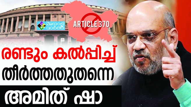 കാശ്മീരിന്റെ കാര്യത്തിൽ എനിക്ക് ഒരു സംശയവും ഉണ്ടായിരുന്നില്ല': ആർട്ടിക്കിൾ 370 എടുത്ത് മാറ്റി കാശ്മീരിന്റെ പ്രത്യേക പദവി റദ്ദ് ചെയ്ത തീരുമാനത്തിൽ തനിക്ക് യാതൊരു സംശയവും ഇല്ലായിരുന്നു എന്ന് വ്യക്തമാക്കി കേന്ദ്ര ആഭ്യന്തര മന്ത്രി അമിത് ഷാ
